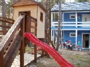 Domki koło Łeby Sarbsk koło Łeby, 300 m od jeziora Sarbsko, 5 km od pięknej plaży. Bardzo dogodna lokalizacja: w otoczeniu lasu, nad jeziorem, blisko morza. Urocze, ciche miejsce, z dala od gwaru, tłoku. Dla spragnionych spokoju idealne warunki, dla chętnych wrażeń i atrakcji kilka minut drogi do Łeby. Domki: - salon, - kuchnia, - 2 sypialnie, - łazienka. Posesja: * ogrodzony teren z możliwością parkowania * miejsce na ognisko, * wiata biesiadna kryta strzechą, * grill, leżak, parasol * hamak, piaskownica, huśtawka * boisko do siatkówki plażowej. Zaprasz